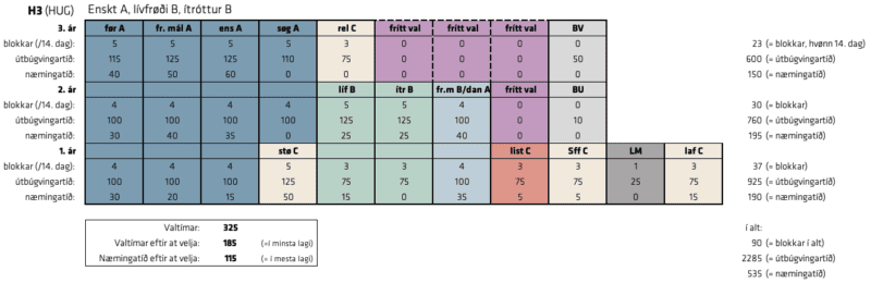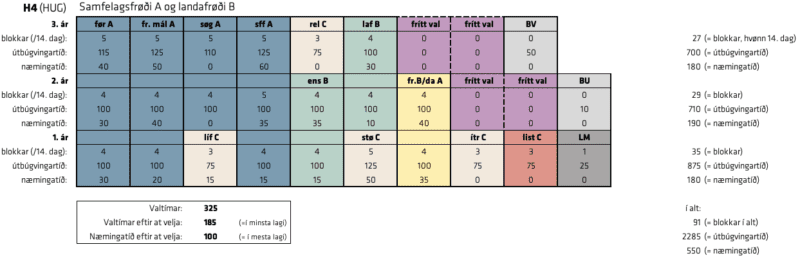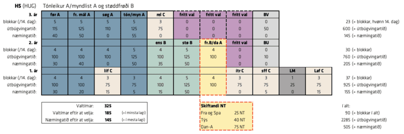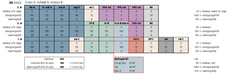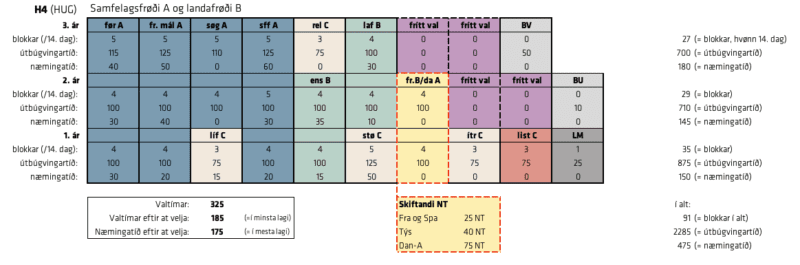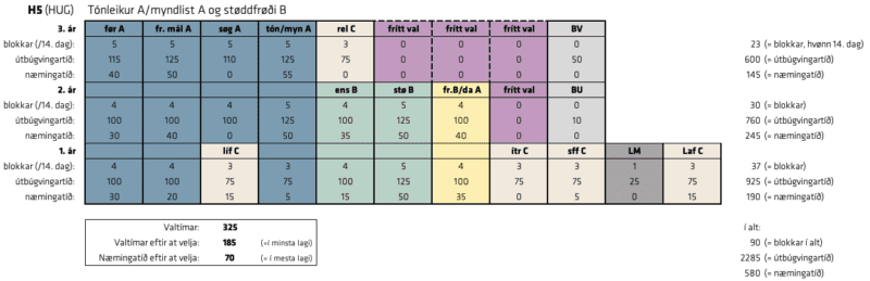 Á H3, H4 og H5 skal tú velja eina listalærugrein, eitt fremmandamál B ella Danskt A og Fremmandamál A.
