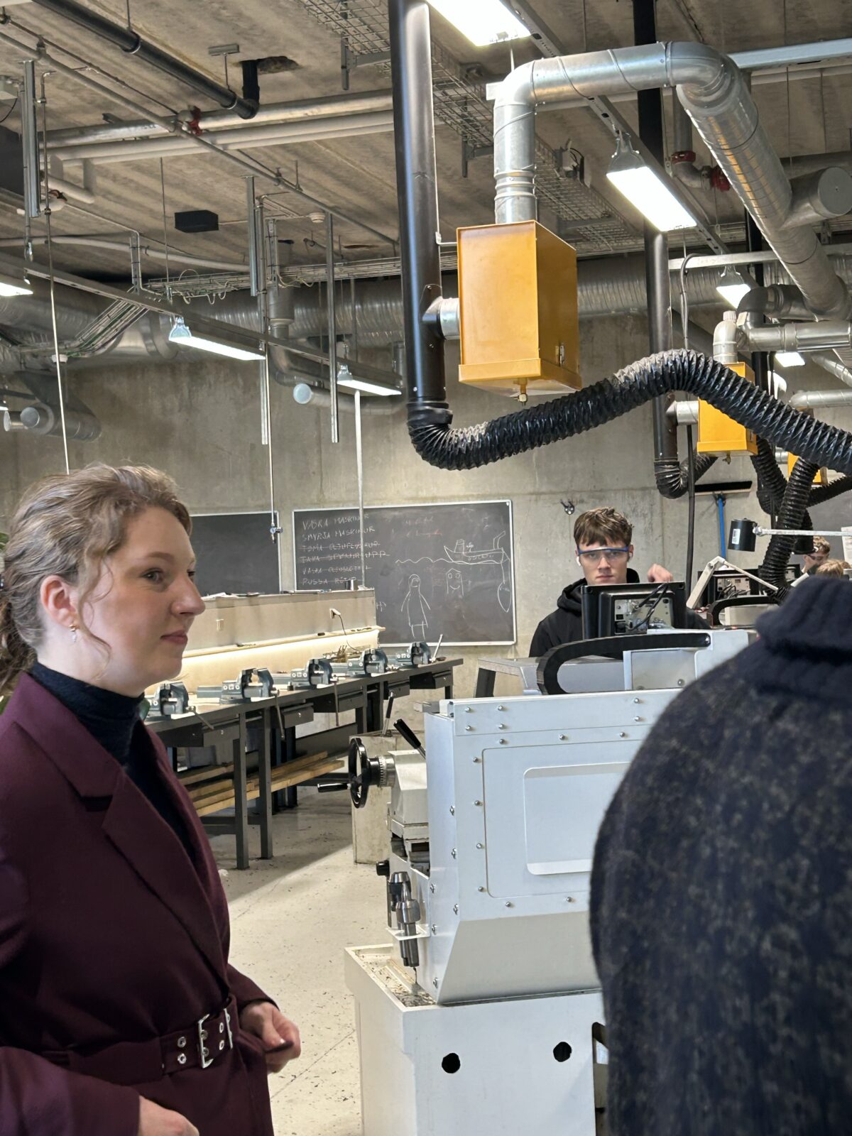 Elsa Berg fekk rundvísing á skúlanum, har hon vitjaði stovur og verkstøð. Vitjanin endaði við fundi við leiðsluna á Glasi.