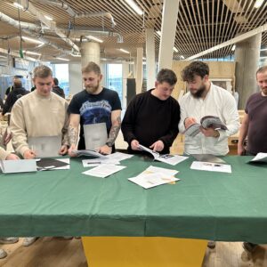 Í hesi vikuni hava 6 húsasmiðir staðið sveinaroynd á timbur á Glasi.