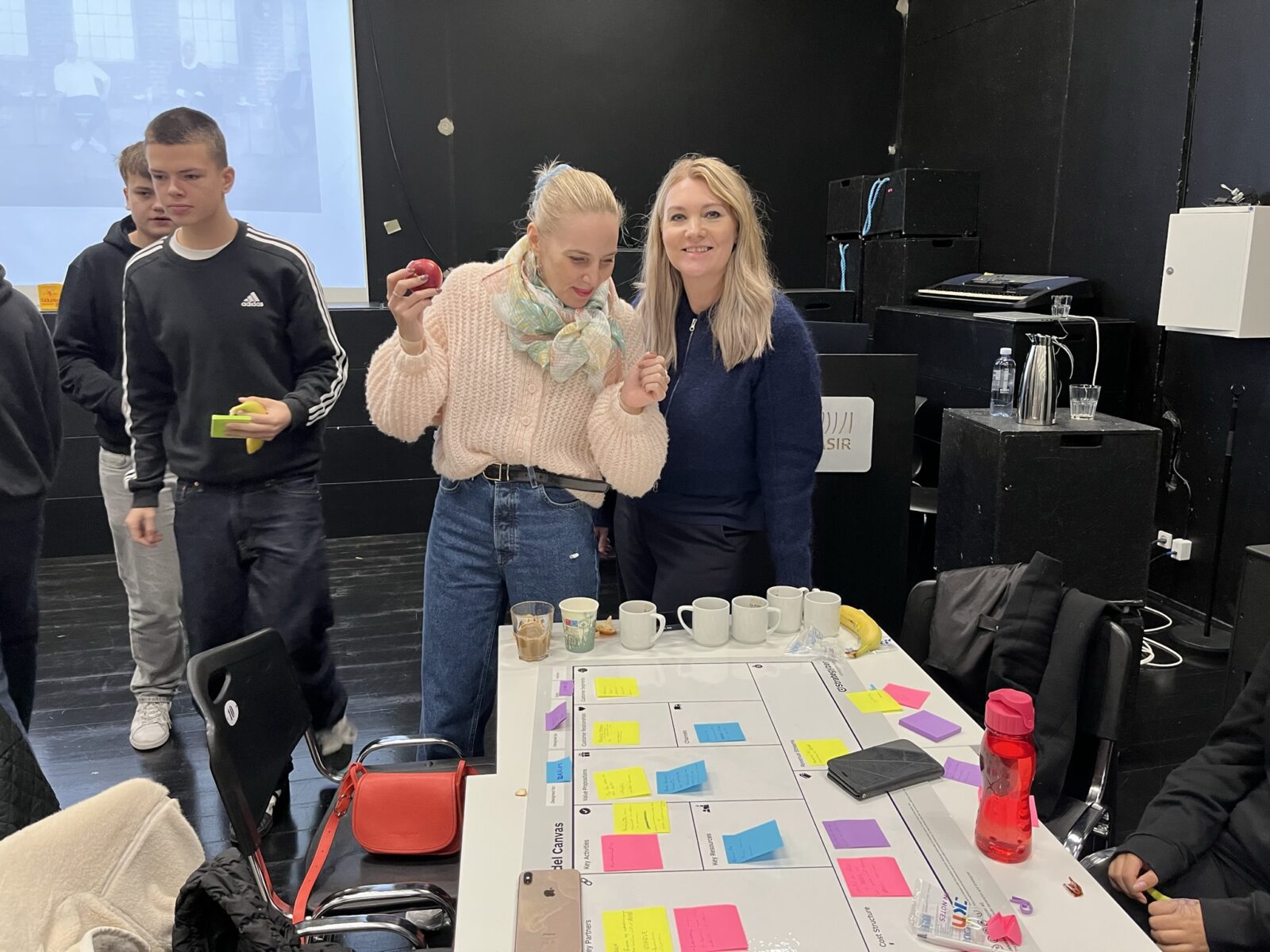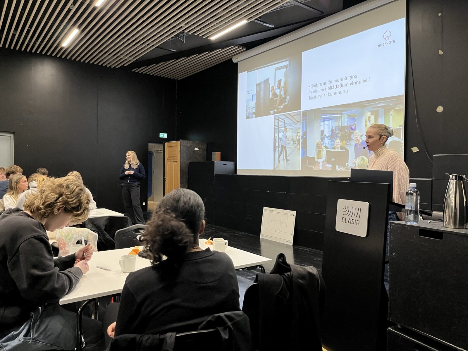 Sóley Heradóttir Hammer og Súsanna Laursen úr Hugskotinum stóðu fyri verkstovuni saman við undirvísarum á Glasi.