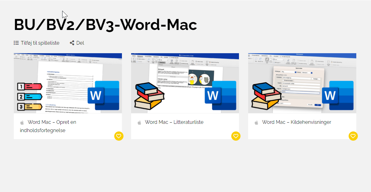Í sambandi við uppgávuskrivingina eru krøv til uppseting og annað. Herundir finnur tú videovegleiðingar til, hvussu tú gert ymiskt av hesum í Word til Windows og Mac. Vegleiðingarnar eru skipaðar sum spælilistar á Ordlab.dk og sum tvey støk videobrot.