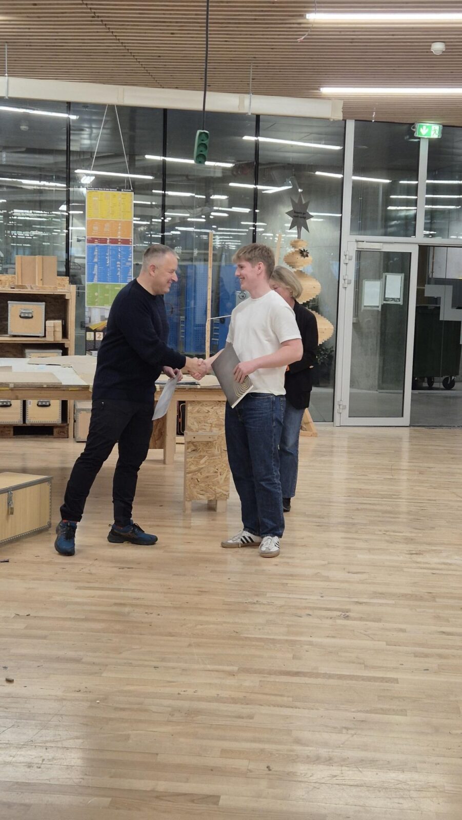 Hósdagin 4. desembur var hugnaløta á timbur í sambandi við, at 6 lærlingar vóru lidnir við sveinastykkið hjá sær.