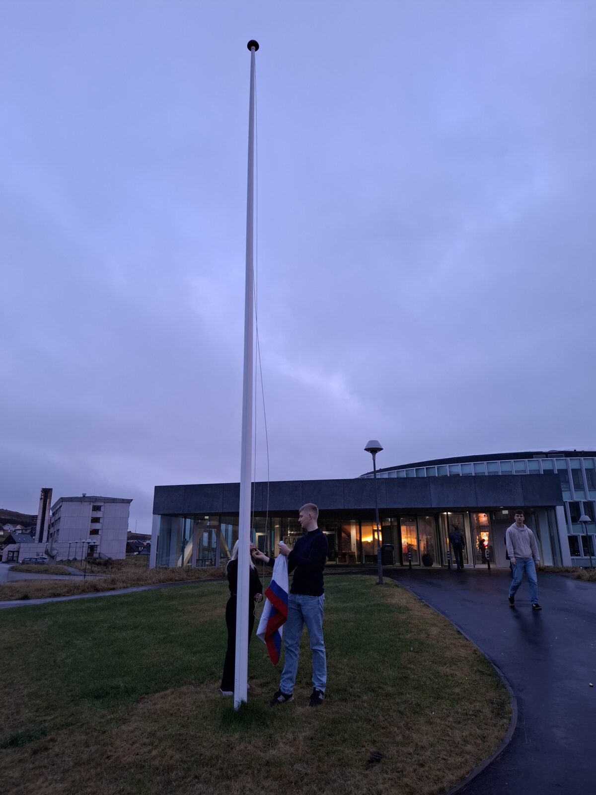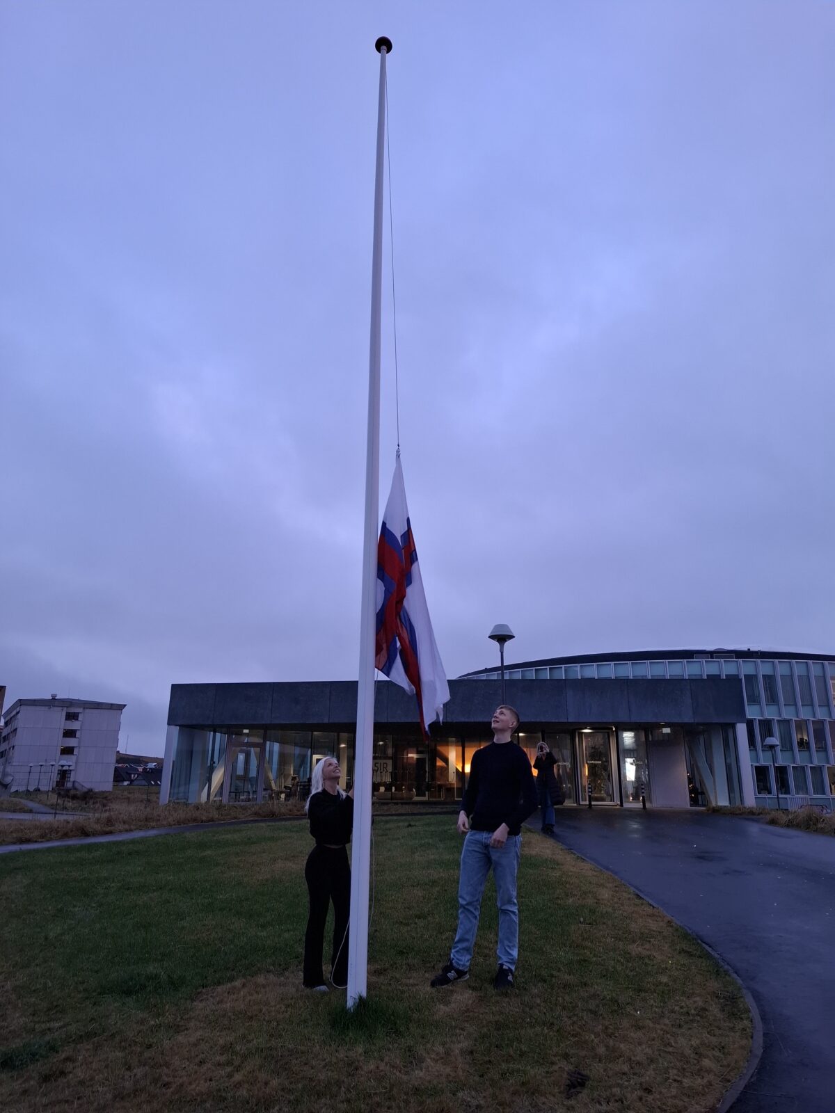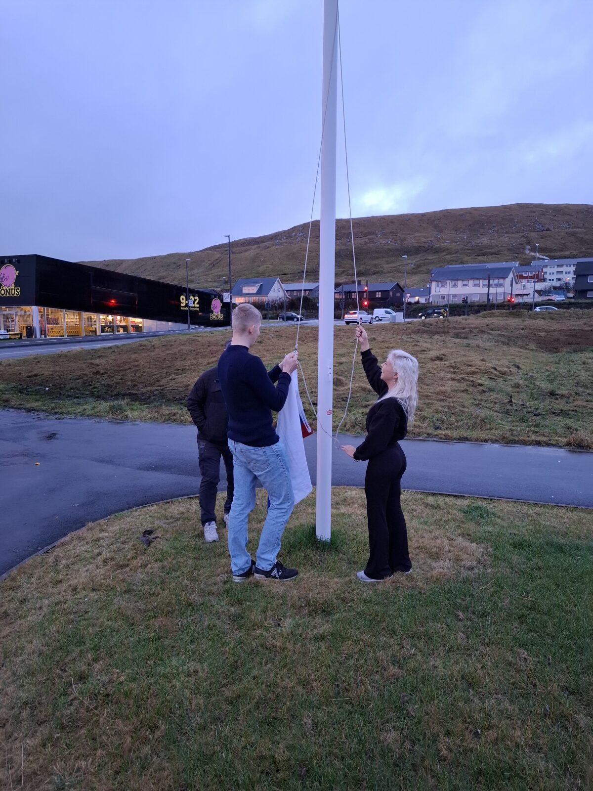 Um morgunin varð Merkið vundið á stong. Seinni um dagin var nógv fólk komið saman at heilsa uppá.