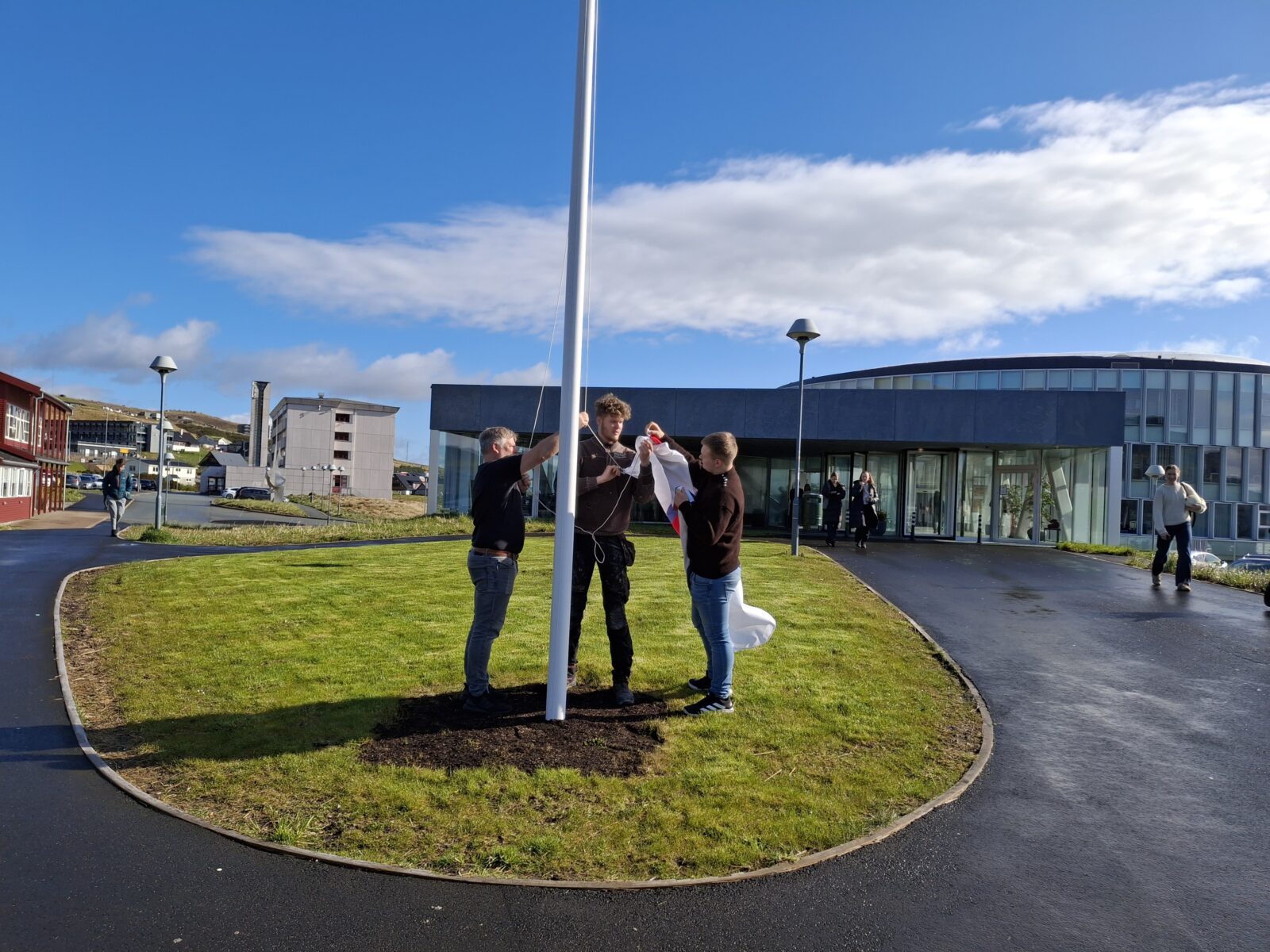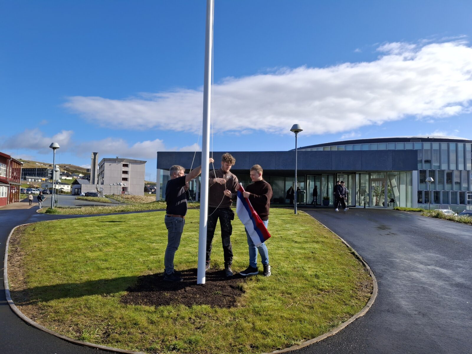 Niðanfyri eru nakrar myndir, tá Merkið varð vundið á stong, og tá húsasmiðirnir fingu skúlaváttan.