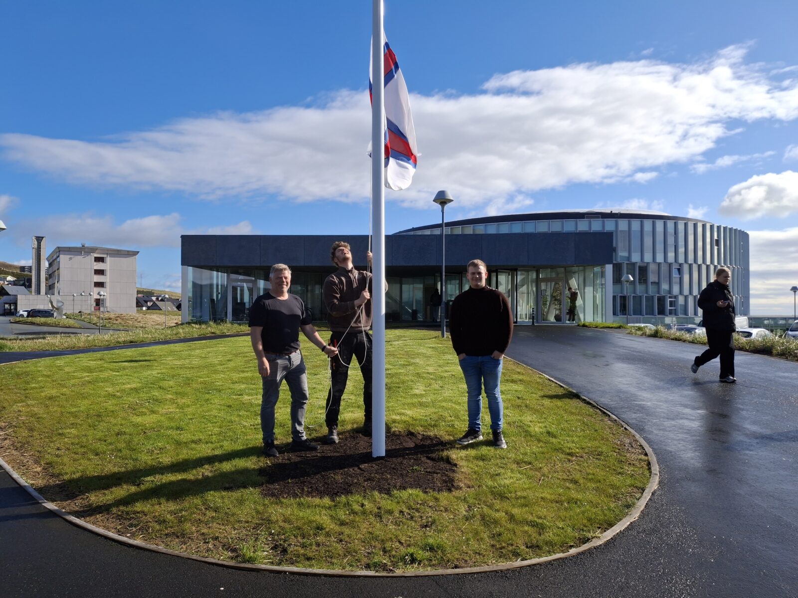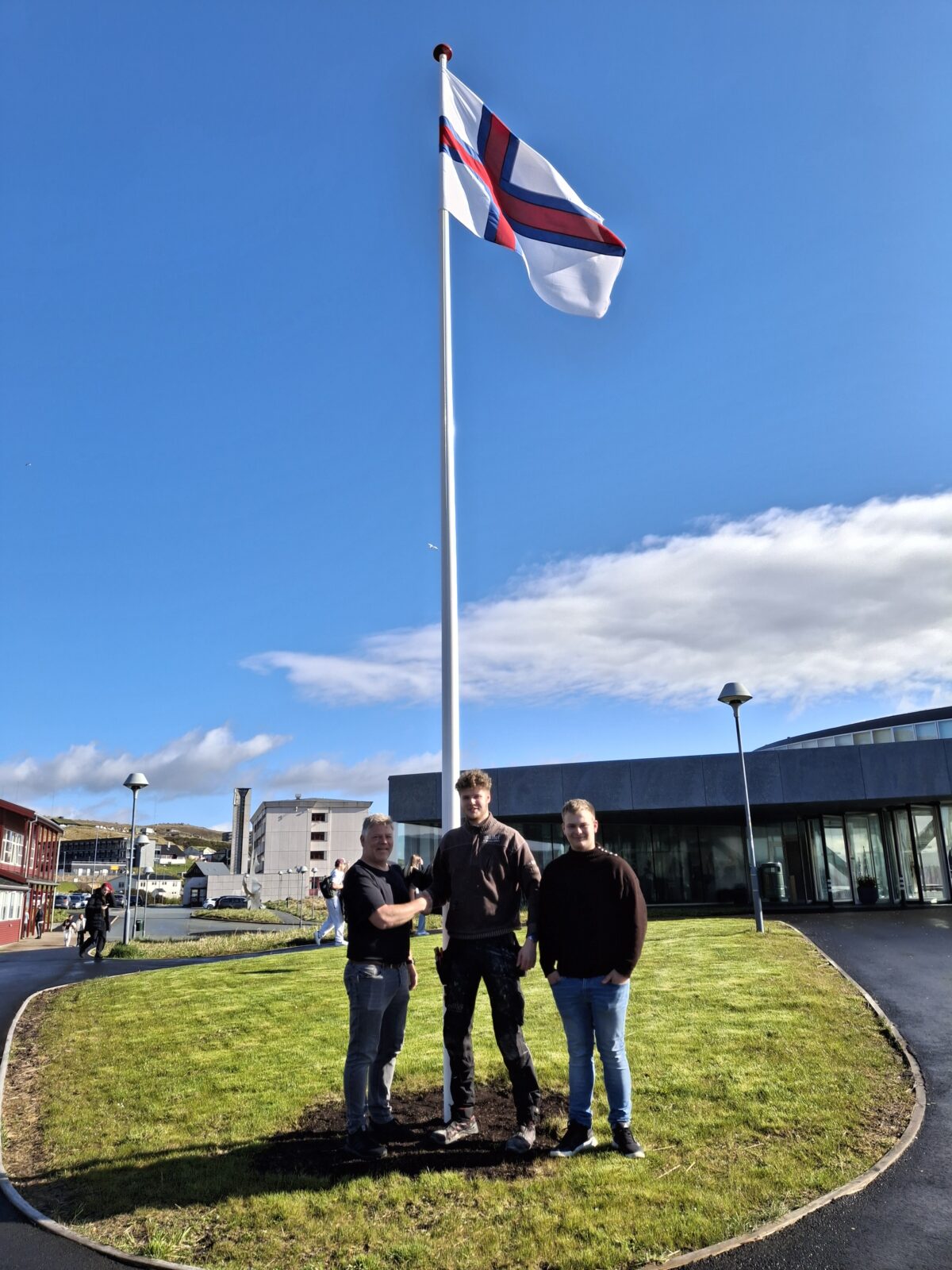 Sum siður er, so vant fyrsti sveinurin á degnum Merkið á stong. Tað var Hans Terji Magnusarson av Skælingi, sum hevur lært hjá sp/f Müller timburmeistara.