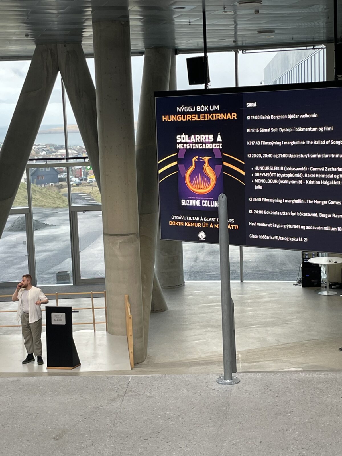 Tiltakið endaði við filmssýning av fyrsta filminum í røðini um hungursleikirnar, og á midnátt kundu vit endiliga keypa okkum bókina Sólarris á heystingardegi og fáa týðaran at signera.