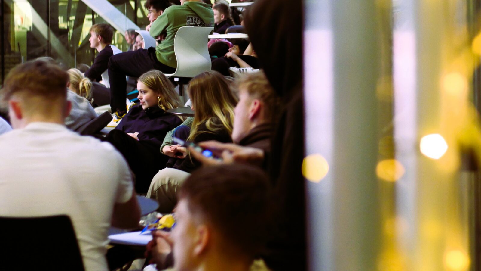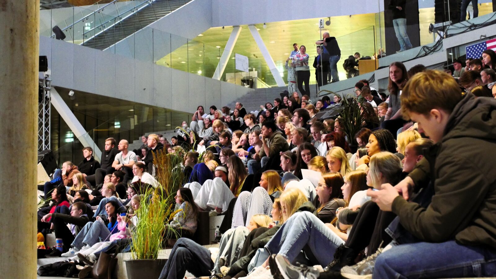 Eftir áhugaverda sofaprátið bjóðaði skúlin øllum áhoyrarum amerikanska matskrá við burgarum, kips og kola, og mac&cheese. Síðani var kvøldið brúkt til hugna og sosialisering, har tey ungu hugnaðu sær við borðspølum, ímeðan tey fylgdu við valstríðnum á stórskíggja í Atrium.