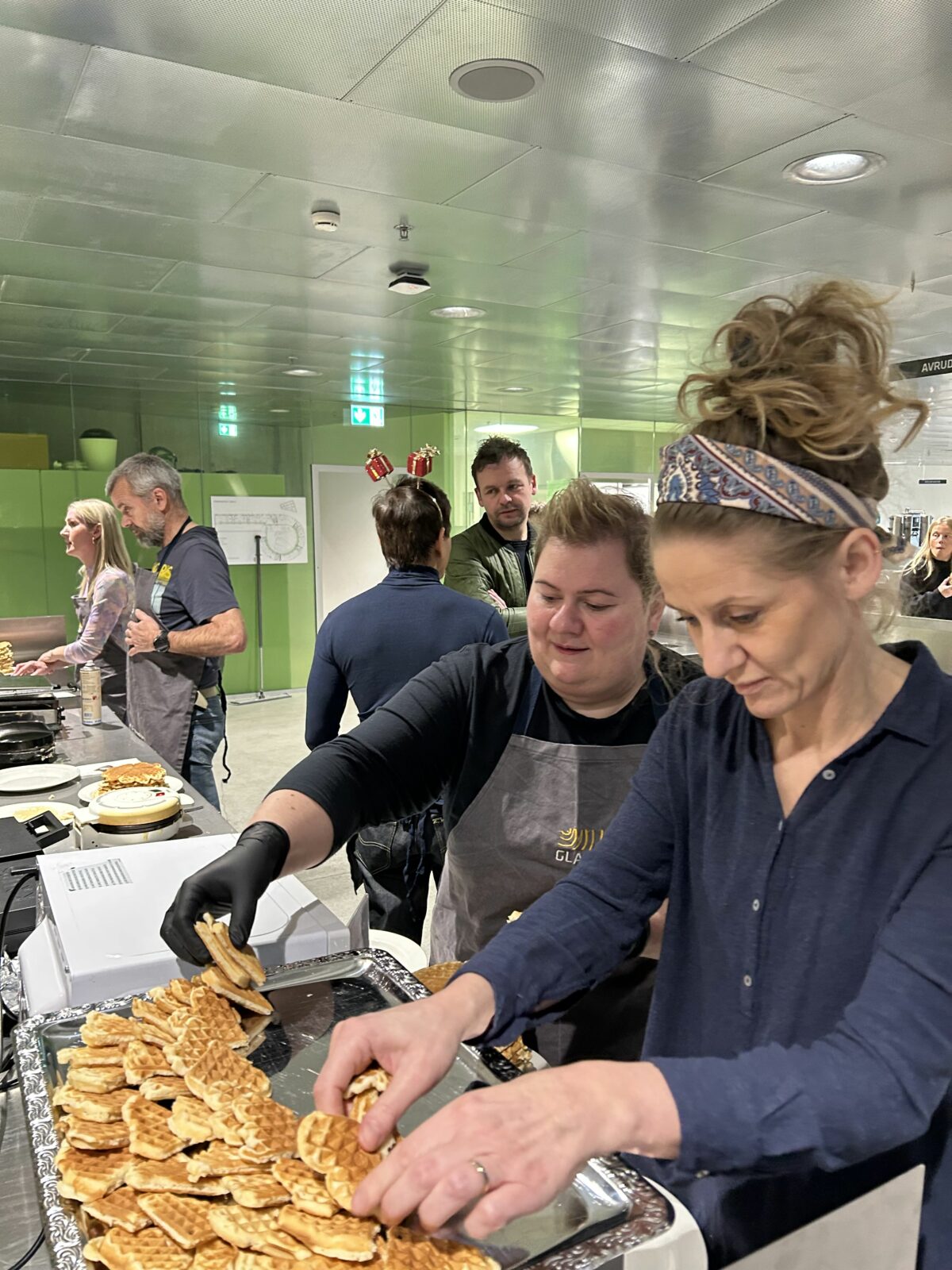 Fleiri hundrað vaflur vórðu bakaðar henda morgunin. Tiltakið var nógv vitjað. So at siga alt varð etið ein tíma seinni.